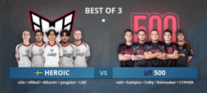 Οι Heroic, μετά και τις απογοητευτικές εμφανίσεις τους τον τελευταίο καιρό, κατέληξαν να αγωνίζονται σε τουρνουά δεύτερης κατηγορίας! Η απουσία τους από το ερχόμενο Major πιθανότατα θα φέρει αλλαγές στο roster, κάτι που λίγο πολύ έχει γίνει ήδη γνωστό. Δεν τίθεται θέμα σύγκρισης με τους 500 αλλά αμφιβάλλω αν ενδιαφέρονται καν για την όλη διοργάνωση του CCT. To να χάσουν το θεωρώ υπερβολικό αλλά το Over 20,5 γύρων για τους 500 αναμενόμενο.