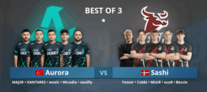 Τουρνουά δεύτερης κατηγορίας ,που έχουν πάρει μέρος ομάδες πρώτης λόγω VRS. Οι Aurora προφανώς θα κερδίσουν μιας και είναι 67 θέσεις ανώτεροι στο World ranking από τους Δανούς. Η αξία σε αυτήν την αναμέτρηση είναι το χαντικαπ των Sashi αλλά και η πιθανότητα να κερδίσουν έναν χάρτη ειδικά αν κληρωθεί η Nuke. Αναμένω ο Acor να ζορίσει τους Τούρκους και να καλύψει το +11,5 που δίνεται αυτήν την στιγμή στους Sashi.