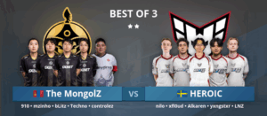 Οι αγώνες ξεκινούν τα ξημερώματα και τελειώνουν το μεσημέρι λόγω Κίνας. Το συγκεκριμένο match up κανονικά θα ήταν άνευ ενδιαφέροντος μιας και οι Mongolz ήταν ξεκάθαρα καλύτεροι. Πρίν 2 μέρες όμως απέσυραν τον καλύτερο τους παίχτη –Senju– με αποτέλεσμα να κατεβαίνουν με τον προπονητή τους σε αυτό το τουρνουά. Ακόμα και έτσι δεν θεωρώ βέβαιο πως θα χάσουν αλλά το να δίνεις 6 γύρους πλεονέκτημα στους Heroic είναι πρόκληση.