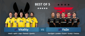 Τελικός λοιπόν, μετά από σχεδόν ένα μήνα και δεκάδες αγώνες σε όλα τα Stage φτάσαμε στην αναμέτρηση του εκατομμυρίου. Για τον Zywoo και την ομάδα του λίγο πολύ το περιμέναμε όσον αφορά τους Faze δεν μπορούμε να πούμε το ίδιο. Η αναμέτρηση είναι ΒΟ5 με τον νικητή να χρειάζεται 3 νίκες, αναμένω να αποκλείσουν Ancient-Train με τους υπόλοιπους χάρτες να είναι στο τραπέζι. Οι Faze θεωρείτε επιτυχία που κατάφεραν και έφτασαν στον τελικό, θα χρειαστεί ένα μικρό θαύμα να κερδίσουν και τους Vitality και δεν το βλέπω να συμβαίνει σήμερα.