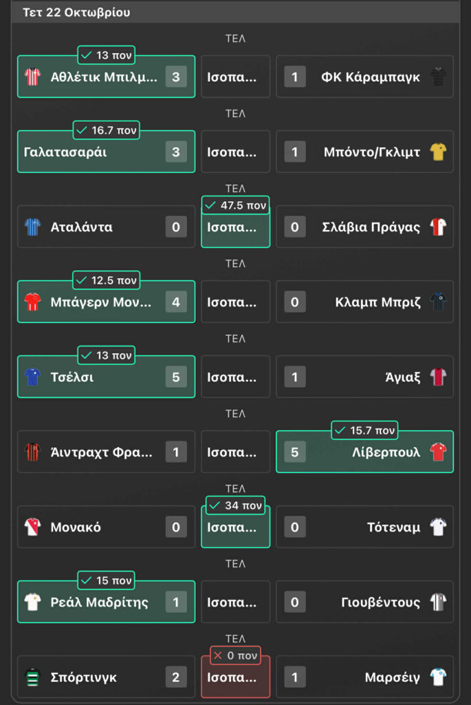 Κάπως έτσι ο συνεργάτης μας στο Betmatrix τερμάτισε πρώτος στη σχετική βαθμολογία για την 3η αγωνιστική της League Phase του Champions League και χωρίς να έχει βάλει ευρώ, πήρε 4.000!